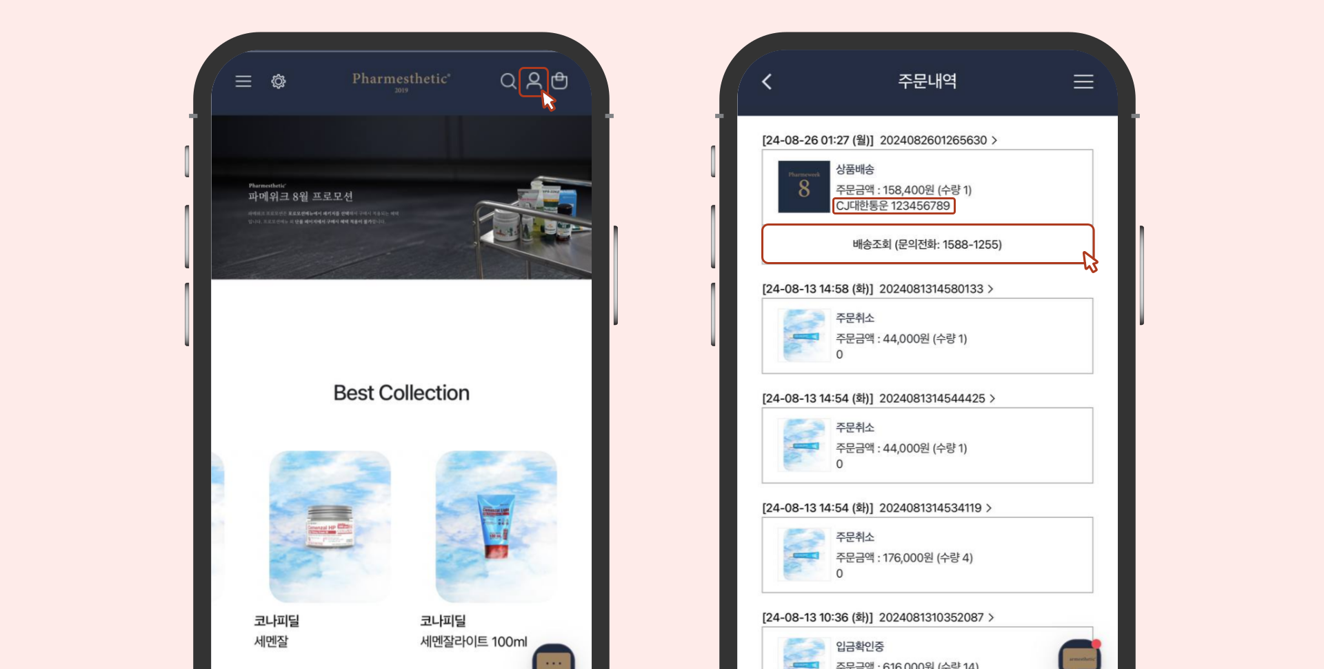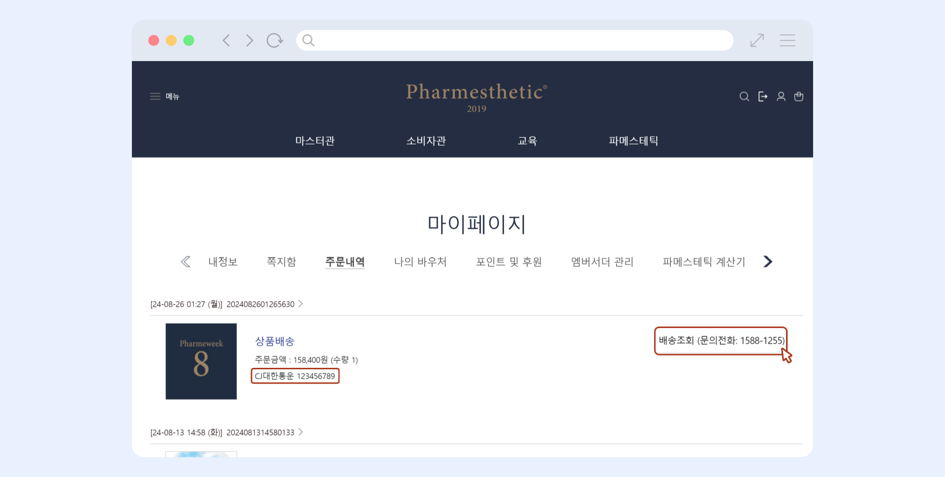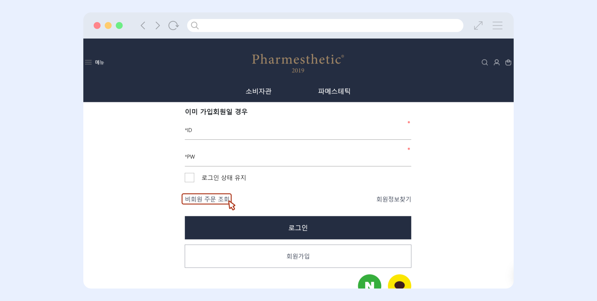 비회원 : 이메일로 전송 받은 주문번호와 비밀번호를 입력하여 배송 조회(https://pharmesthetic.com/bbs/login.php?url=https%3A%2F%2Fpharmesthetic.com%2Fshop%2Forderinquiry.php)