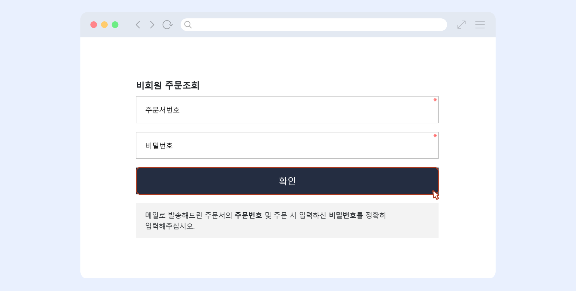 로그인 페이지로 이동하면 왼쪽 하단에 있는 비회원 주문 조회 버튼을 눌러주세요.