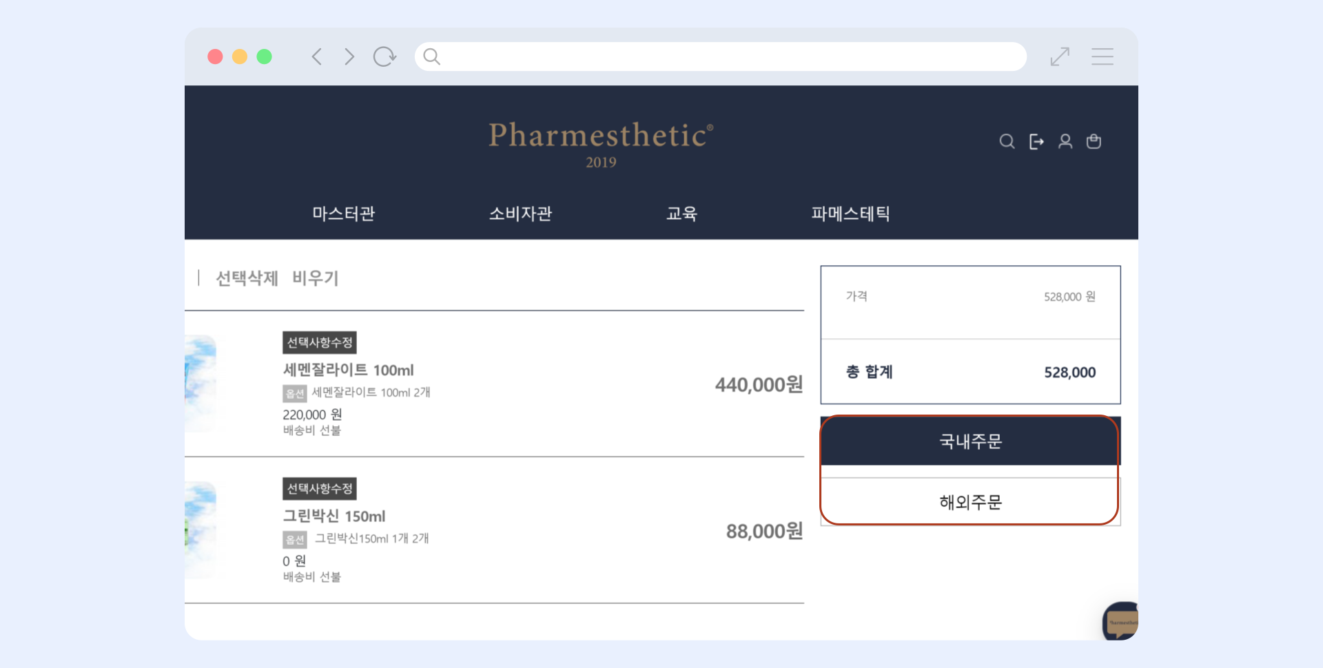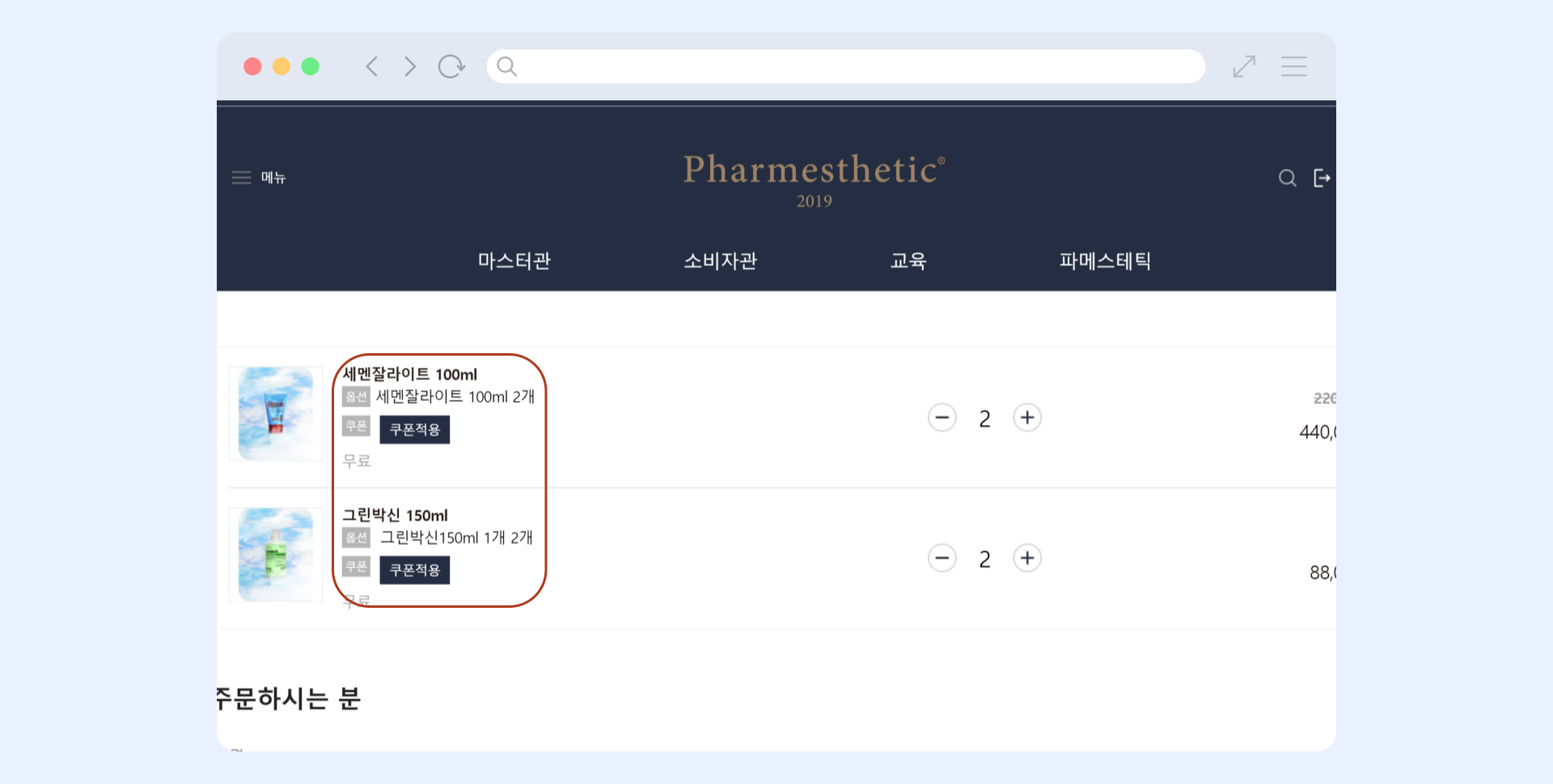 동일한 브랜드의 제품을 장바구니에 담은 경우, 1개의 품목에만 바우처 적용이 가능합니다.